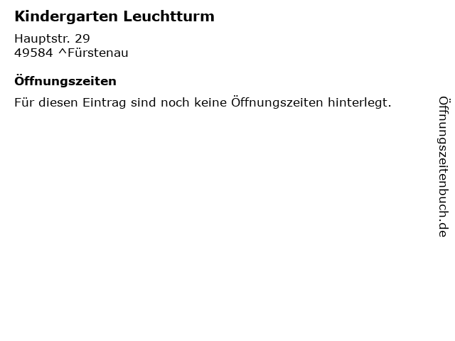 | Öffnungszeiten Kindergarten Leuchtturm in ^Fürstenau anzeigen | |
