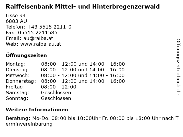 3 Raiffeisenbank Attersee-Nord - (Bankomat Bankstelle) (Entfernung: 3,00 km) Unterdorf 2, 6886 Schoppernau 4 Raiffeisenbank Bezau-Mellau-Bizau - (Bankomat Bankstelle) (Entfernung: 6,44 km) Kirchdorf 340, 6874 Bizau 6 Raiffeisenbank Bezau-Mellau-Bizau - (Bankomat Bankstelle) (Entfernung: 7,91 km) Platz 58, 6881 Mellau |