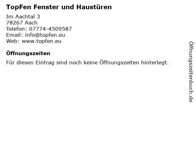| Öffnungszeiten TopFen Fenster und Haustüren in Aach anzeigen | |