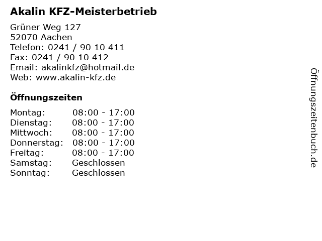 | Öffnungszeiten Akalin KFZ-Meisterbetrieb in Aachen anzeigen | |