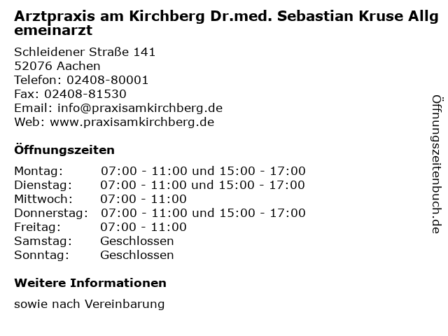 Branchen & Suchbegriffe zu Arztpraxis am Kirchberg Dr.med. Sebastian Kruse Allgemeinarzt:allgemeinarzt, allgemeinmedizin, arzt, arztpraxis, dr.med., kruse, sebastian |