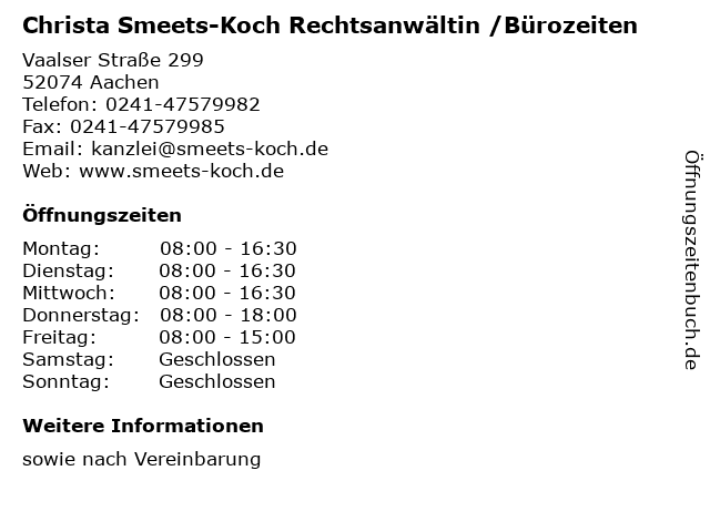 Branchen & Suchbegriffe zu Christa Smeets-Koch Rechtsanwältin /Bürozeiten:/bürozeiten, anwalt, anwaltskanzlei, christa, koch, notar, rechtsanwalt, rechtsanwältin, smeets |