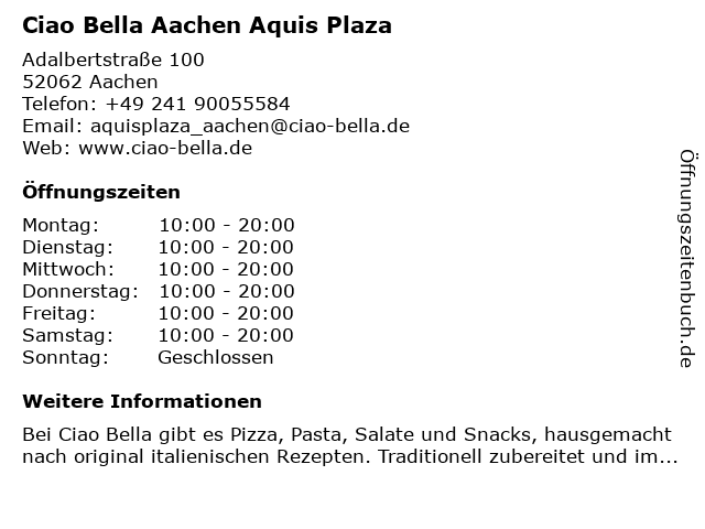 Branchen & Suchbegriffe zu Ciao Bella Aachen Aquis Plaza:aquis, bella, ciao, italienisch, pasta, pizza, plaza, restaurant, salat, to go, vegetarisch |