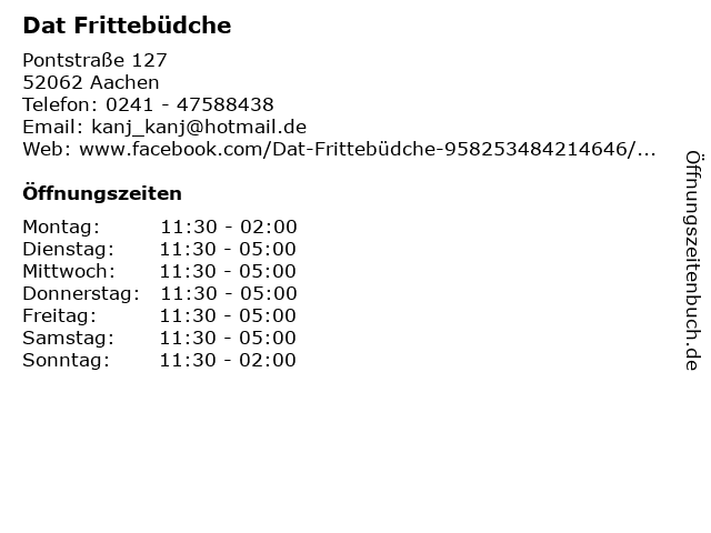 | Öffnungszeiten Dat Frittebüdche in Aachen anzeigen | |
