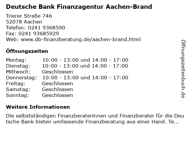 Branchen & Suchbegriffe zu Deutsche Bank Finanzagentur Aachen-Brand:bank, bankomat, brand, deutsche, finanzagentur |