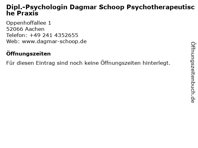 | Dipl.-Psychologin Dagmar Schoop Psychotherapeutische Praxis anrufen | |