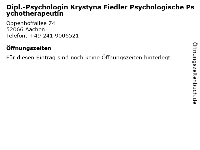| Dipl.-Psychologin Krystyna Fiedler Psychologische Psychotherapeutin anrufen | |
