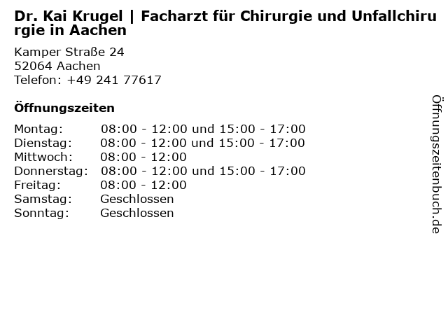 Branchen & Suchbegriffe zu Dr. Kai Krugel | Facharzt für Chirurgie und Unfallchirurgie in Aachen:chirurg, chirurgie, dr., facharzt, handchirurg, kai, krugel, notfallmedizin, sportmedizin, unfallchirurg, unfallchirurgie |