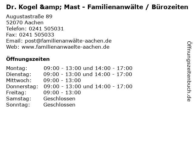Branchen & Suchbegriffe zu Dr. Kogel & Mast - Familienanwälte / Bürozeiten:bürozeiten, dr., familienanwälte, kogel, mast, notar, rechtsanwalt, w. |