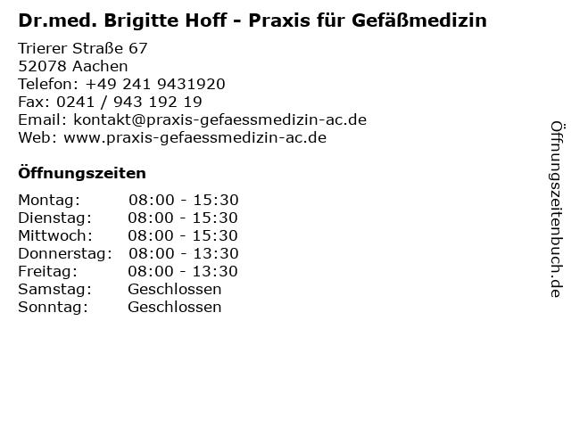 Branchen & Suchbegriffe zu Dr.med. Brigitte Hoff - Praxis für Gefäßmedizin:allgem.chirurgie, brigitte, chirurg, dr.med., f., fachärztin, gefäßmedizin, hoff, praxis |