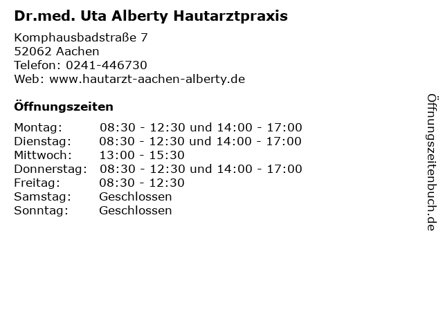 Branchen & Suchbegriffe zu Dr.med. Uta Alberty Hautarztpraxis:alberty, arzt, arztpraxis, dermatologen, dr.med., hautarzt, hautarztpraxis, uta |