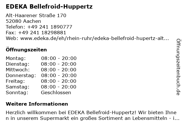 | Öffnungszeiten EDEKA Bellefroid-Huppertz in Aachen anzeigen | |