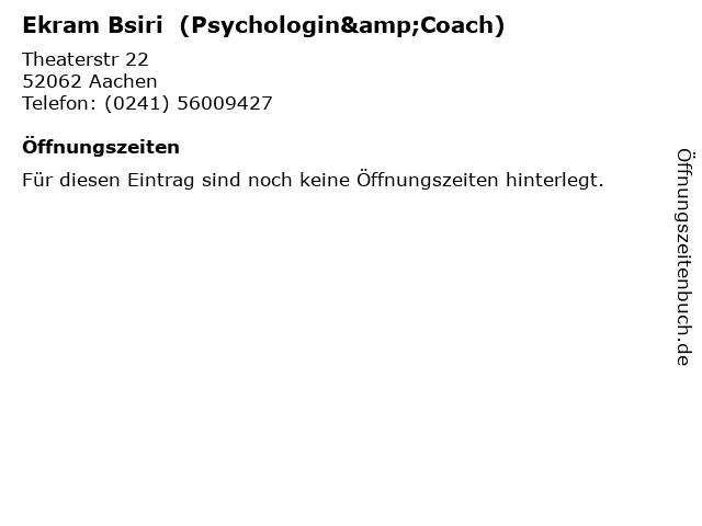 | Ekram Bsiri (Psychologin&Coach) anrufen | |