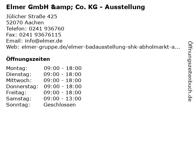 1 Elmer GmbH & Co. KG - Abholmarkt Auftragsannahme (Entfernung: 0,00 km) Jülicher Str. 425, 52070 Aachen 5 Schmidt-Rudersdorf - Fliesen & Naturstein -Ausstellung (Entfernung: 3,87 km) Palmestraße 3, 52146 Würselen 6 |