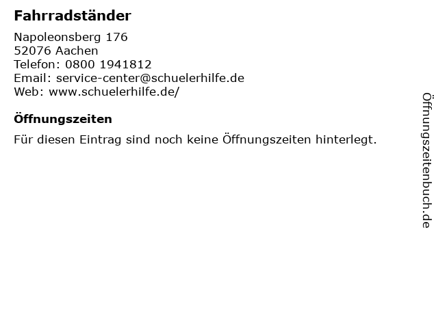 | Öffnungszeiten Fahrradständer in Aachen anzeigen | |