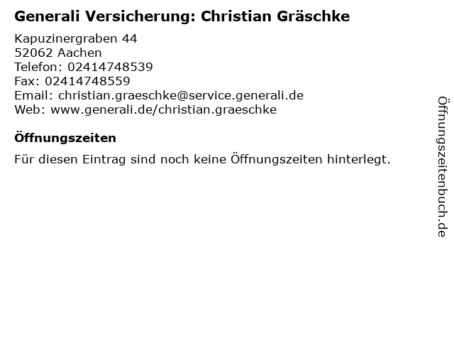 | Generali Versicherung: Christian Gräschke anrufen | |