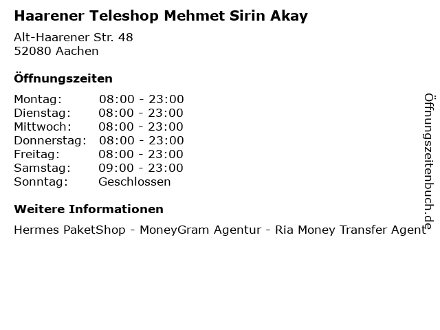 | Öffnungszeiten Haarener Teleshop Mehmet Sirin Akay in Aachen anzeigen | |