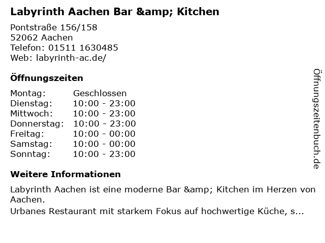 Branchen & Suchbegriffe zu Labyrinth Aachen Bar & Kitchen:bar, frühstückslokal, kitchen, labyrinth |