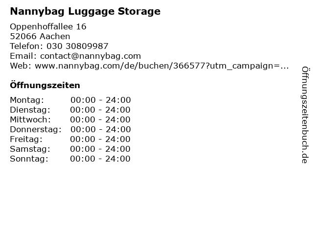 | Öffnungszeiten Nannybag Luggage Storage in Aachen anzeigen | |