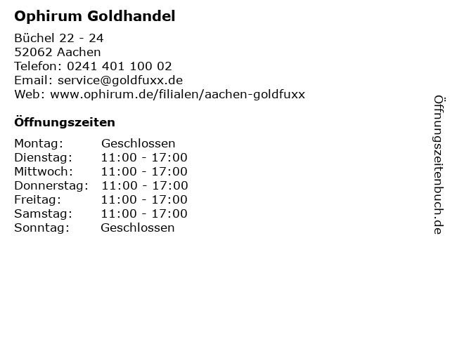 | Öffnungszeiten Ophirum Goldhandel in Aachen anzeigen | |