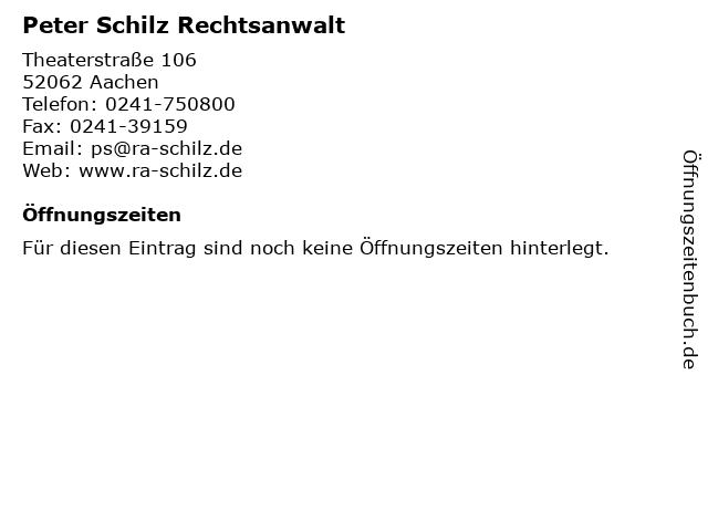 | Öffnungszeiten Peter Schilz Rechtsanwalt in Aachen anzeigen | |