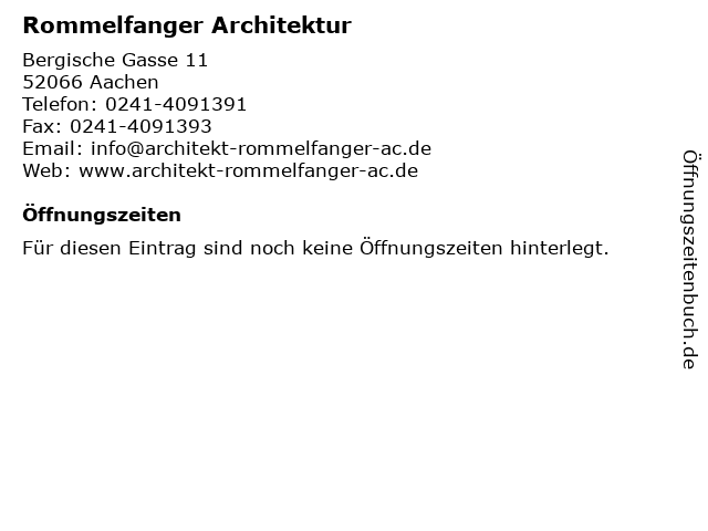 | Öffnungszeiten Rommelfanger Architektur in Aachen anzeigen | |