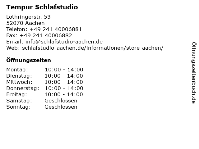 | Öffnungszeiten Tempur Schlafstudio in Aachen anzeigen | |