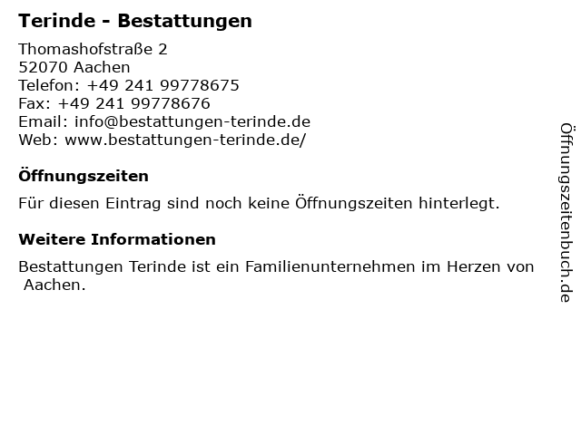 | Öffnungszeiten Terinde - Bestattungen in Aachen anzeigen | |