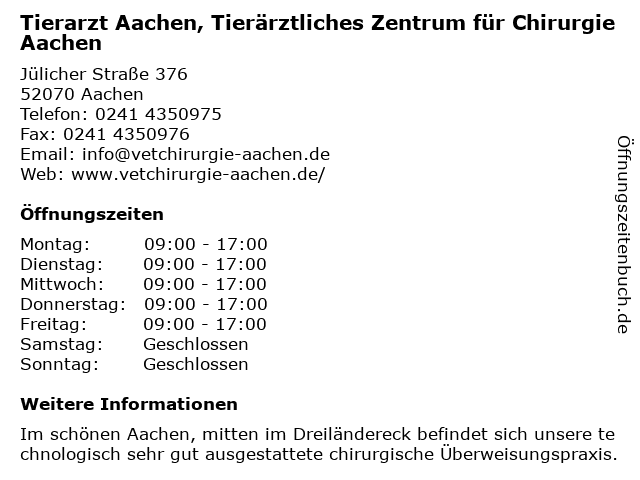 Branchen & Suchbegriffe zu Tierarzt Aachen, Tierärztliches Zentrum für Chirurgie Aachen:chirurgie, tierarzt, tierärztliches, zentrum |