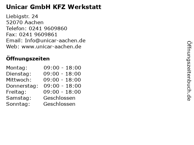 | Öffnungszeiten Unicar GmbH KFZ Werkstatt in Aachen anzeigen | |