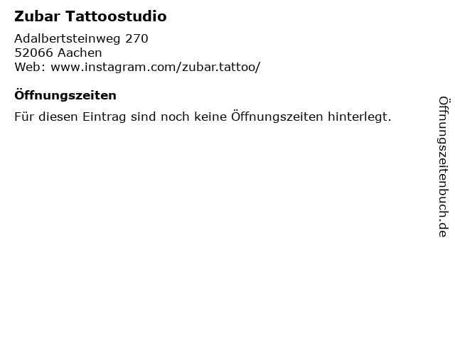 | Öffnungszeiten Zubar Tattoostudio in Aachen anzeigen | |
