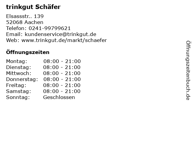 | Öffnungszeiten trinkgut Schäfer in Aachen anzeigen | |