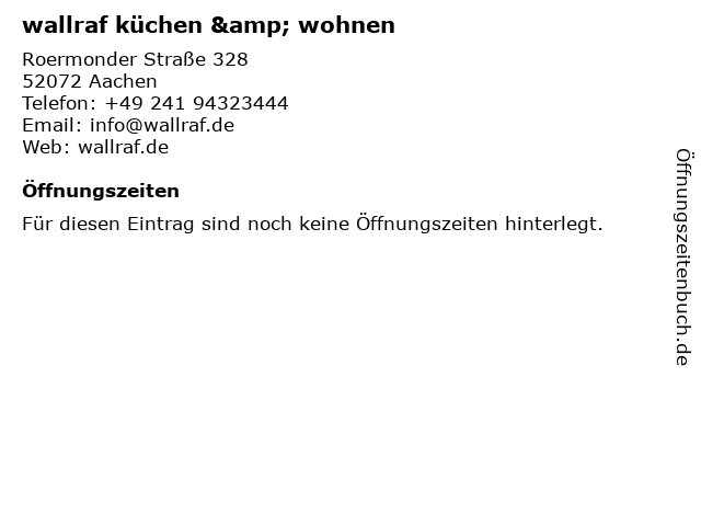 | Öffnungszeiten wallraf küchen & wohnen in Aachen anzeigen | |
