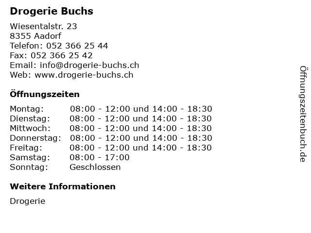 | Öffnungszeiten Drogerie Buchs in Aadorf anzeigen | |