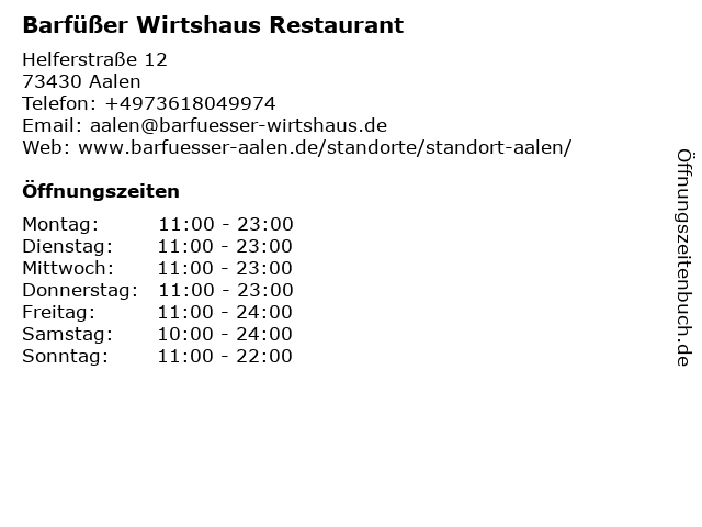 | Öffnungszeiten Barfüßer Wirtshaus Restaurant in Aalen anzeigen | |