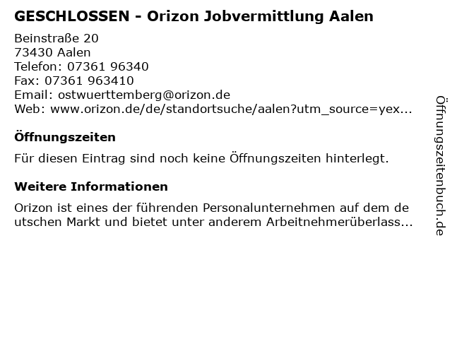 | GESCHLOSSEN - Orizon Jobvermittlung Aalen anrufen | |