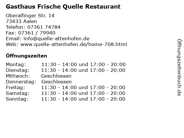 Öffnungszeiten Gasthaus Frische Quelle Restaurant