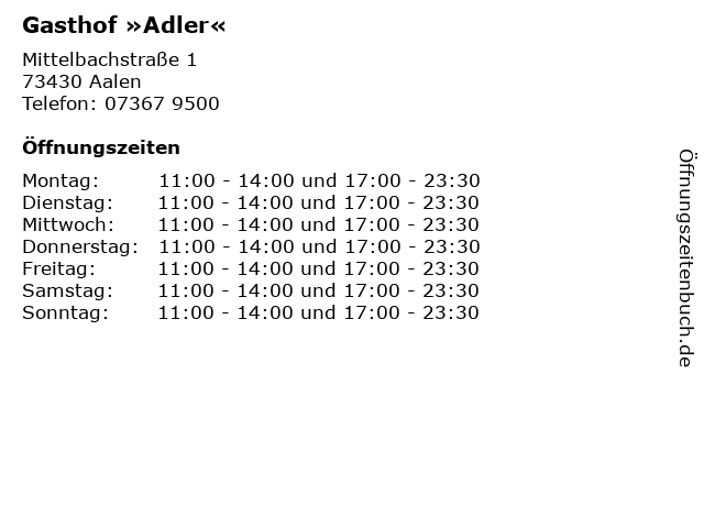 | Öffnungszeiten Gasthof »Adler« in Aalen anzeigen | |