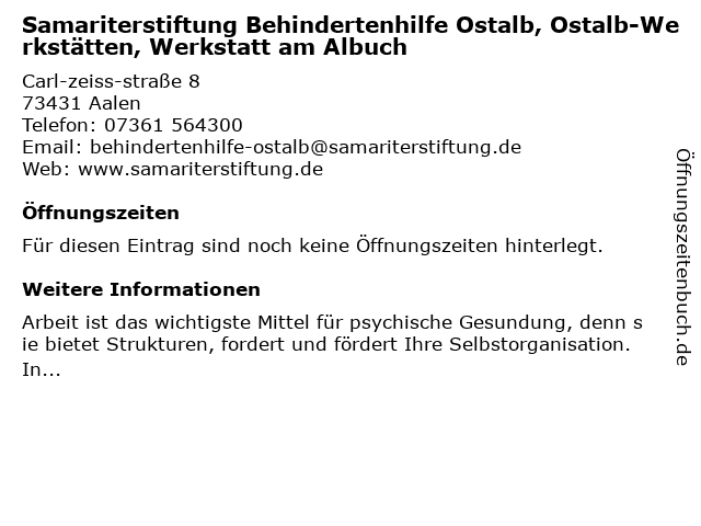 | Samariterstiftung Behindertenhilfe Ostalb, Ostalb-Werkstätten, Werkstatt am Albuch anrufen | |