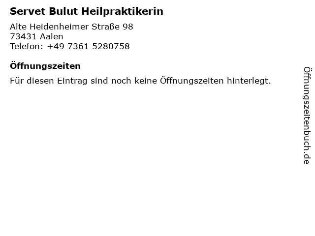 | Telefonnummer Servet Bulut Heilpraktikerin in Aalen (+49 7361 5280758) anrufen | |