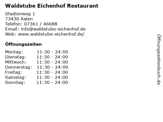 | Öffnungszeiten Waldstube Eichenhof Restaurant in Aalen anzeigen | |