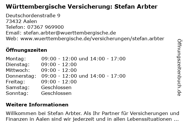 Branchen & Suchbegriffe zu Württembergische Versicherung: Stefan Arbter:arbter, stefan, versicherung, württembergische |