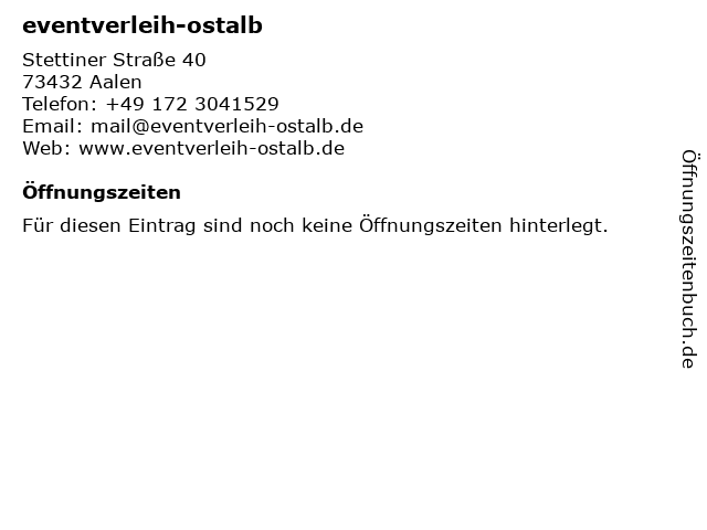 | Öffnungszeiten eventverleih-ostalb in Aalen anzeigen | |