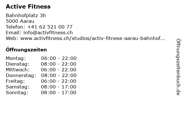 | Öffnungszeiten Active Fitness in Aarau anzeigen | |