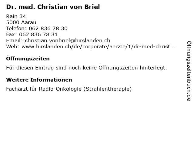 | Öffnungszeiten Dr. med. Christian von Briel in Aarau anzeigen | |