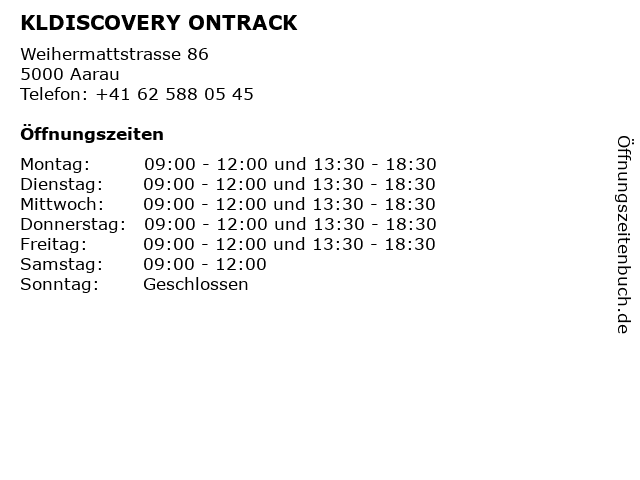 | Öffnungszeiten KLDISCOVERY ONTRACK in Aarau anzeigen | |