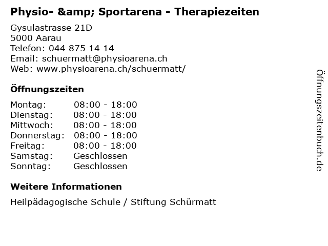 Öffnungszeiten Physio- & Sportarena - Therapiezeiten in Aarau anzeigen