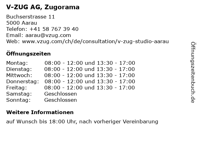 Öffnungszeiten V-ZUG AG, Zugorama in Aarau anzeigen | |