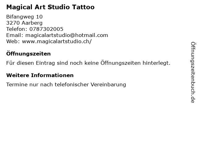 | Öffnungszeiten Magical Art Studio Tattoo in Aarberg anzeigen | |