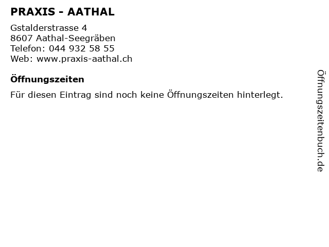 | Öffnungszeiten PRAXIS - AATHAL in Aathal-Seegräben anzeigen | |